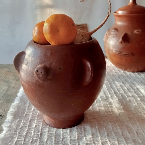 Las vasijas de cerdito se elaboran en el taller familiar de la maestra Lorena en Tlapazola, Oaxaca. Ella aprendió a trabajar el barro de su madre y su abuela.